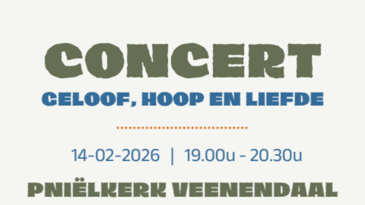 We hopen op DV zaterdag 14 februari 2026 mee te werken aan het benefietconcert Geloof, Hoop en Liefde in de Pniëlkerk te Veenendaal.
